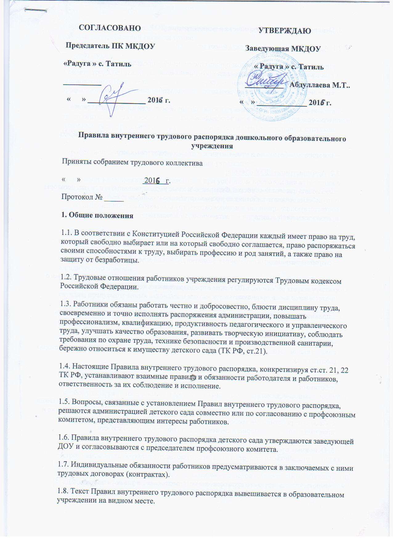 Правила внутреннего трудового распорядка
